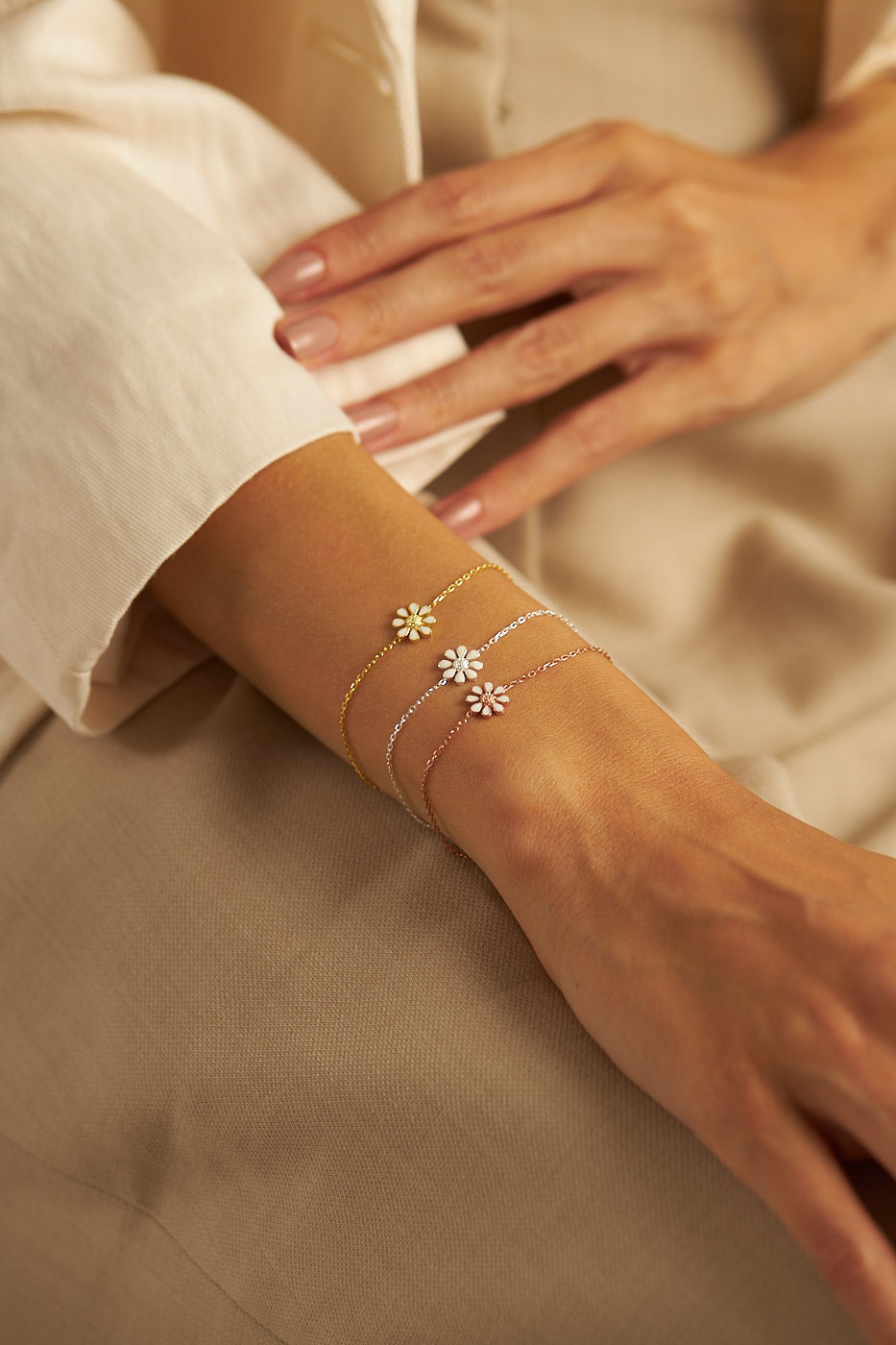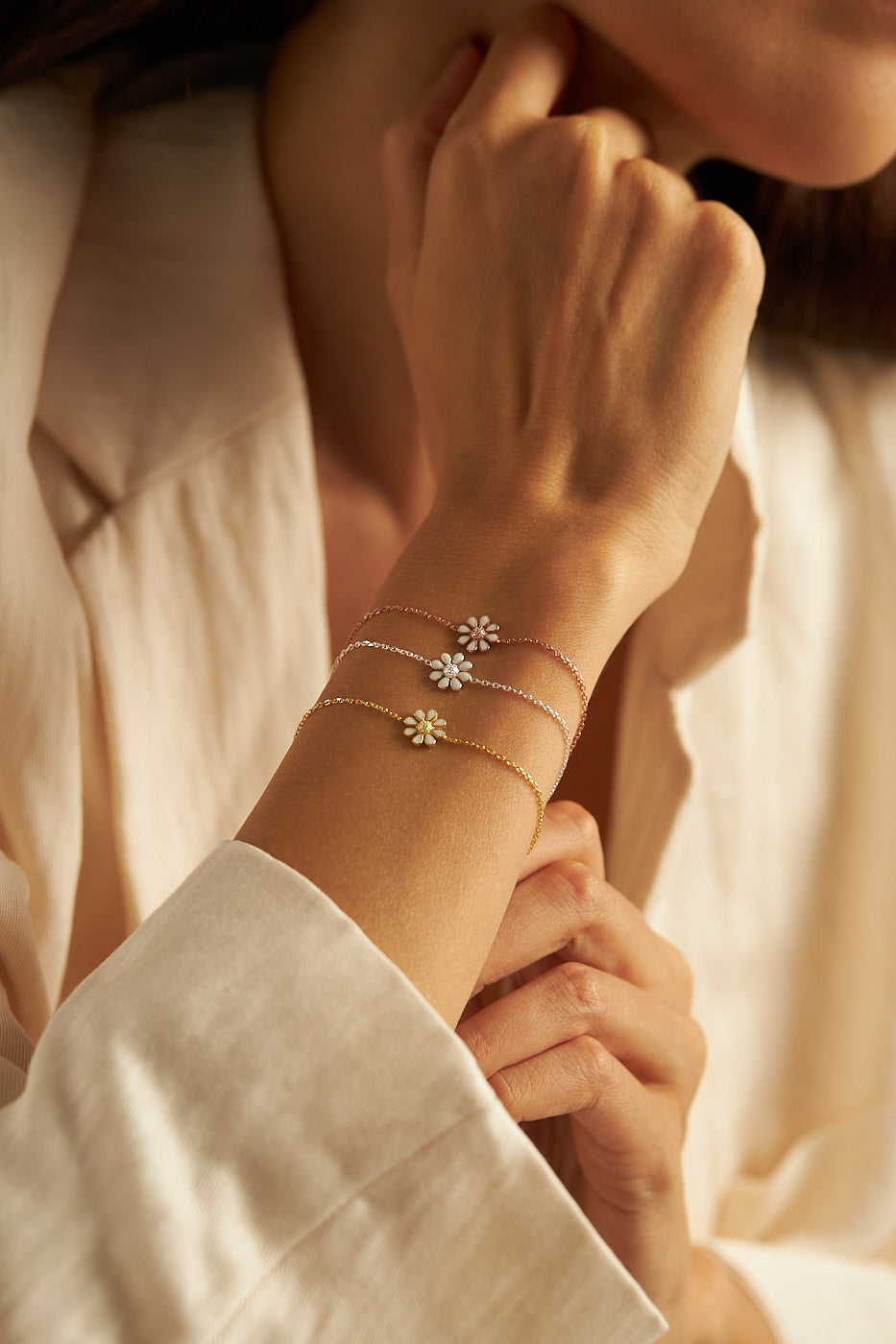 Tauche ein in die zarte Schönheit der Daisy Armkette – ein bezauberndes Schmuckstück, das die Anmut des Gänseblümchens in den Mittelpunkt stellt. Dieses floral inspirierte Accessoire erinnert nicht nur an die blühende Natur, sondern auch daran, dass du stark und schön zugleich bist.