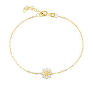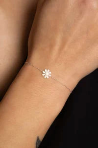 Die Daisy Armkette präsentiert sich in einer besonders kleinen und zierlichen Ausführung, die nicht nur für Erwachsene, sondern auch für Kinder geeignet ist. Das Gänseblümchen, als Symbol der Zartheit und Ausdauer, findet so seinen Platz an deinem Handgelenk.