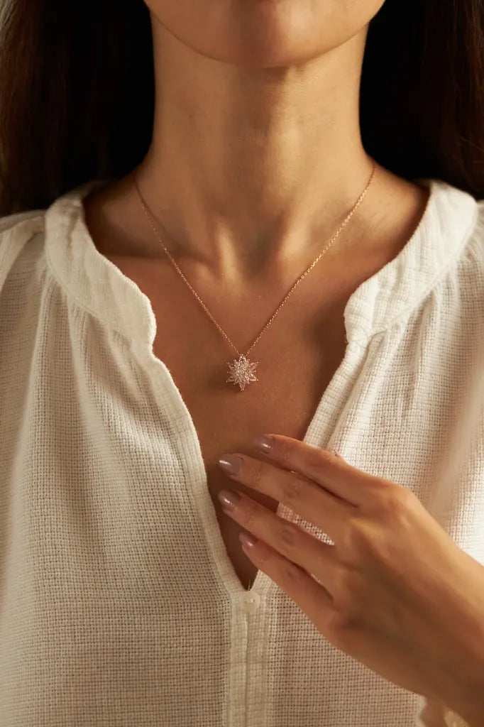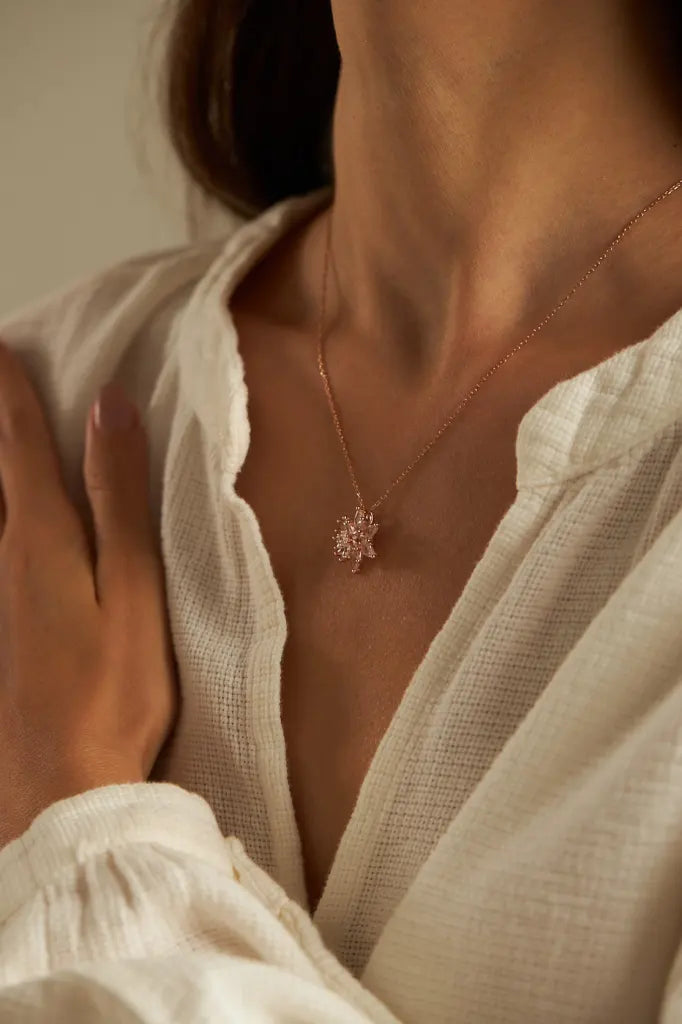 Die exklusive Pure Lotus Halskette verkörpert zeitlose Eleganz und spirituelle Bedeutung. Der Lotusblütenanhänger, erhältlich in Roségold, wurde mit höchster Sorgfalt aus hochwertigem 925 Sterling Silber gefertigt und edel mit 14 Karat vergoldet. Diese einzigartige Halskette strahlt Schönheit und Reinheit aus und ist weit mehr als nur ein Accessoire – sie ist ein Symbol der Erneuerung und Liebe.