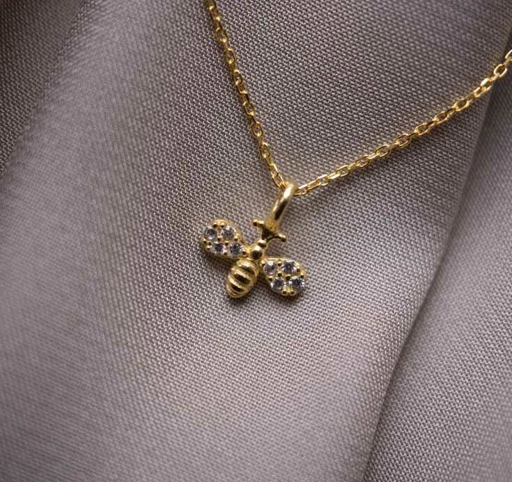Die Kette ist in Form von einer kleinen Biene gestaltet, die mit viel Liebe zum Detail gefertigt wurden. Die Biene ist mit kleinen Zirkonia-Steinchen besetzt, die im Licht wunderschön funkeln und deine Augen zum Strahlen bringen werden. Die Kette selbst besteht aus hochwertigem 925 Sterling Silber, das nicht nur edel aussieht, sondern auch langlebig und robust ist. Diese Bienenkette ist nicht nur ein modisches Accessoire, sondern auch ein Symbol für den Fleiß und die Schönheit der Natur. Die Bienen sind bekannt für ihre wichtige Rolle bei der Bestäubung von Pflanzen und ihrer Bedeutung für das ökologische Gleichgewicht