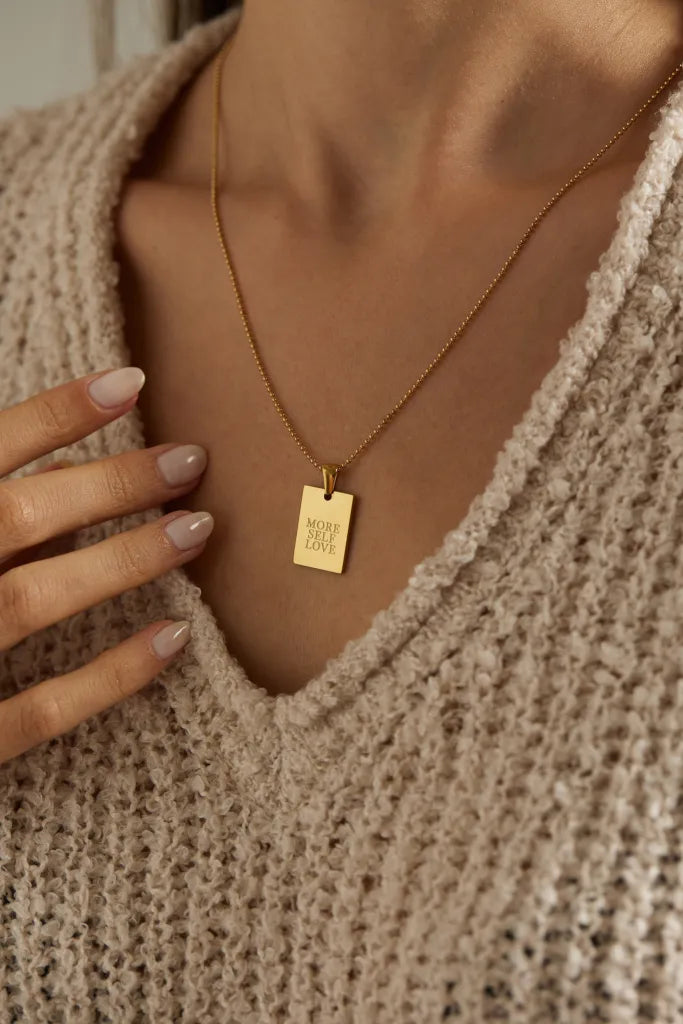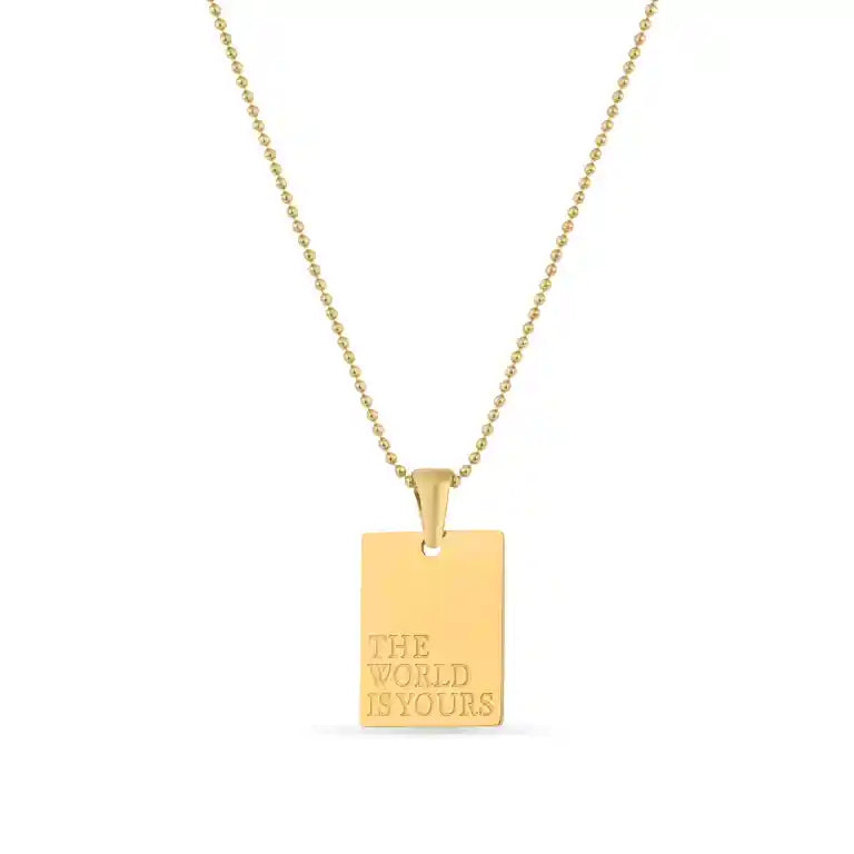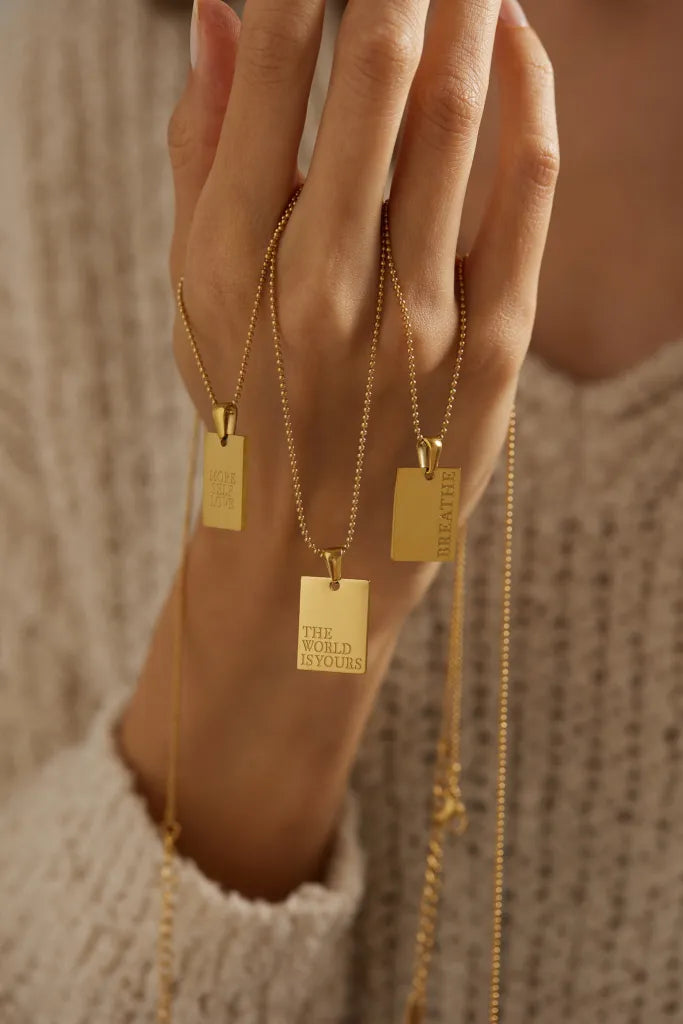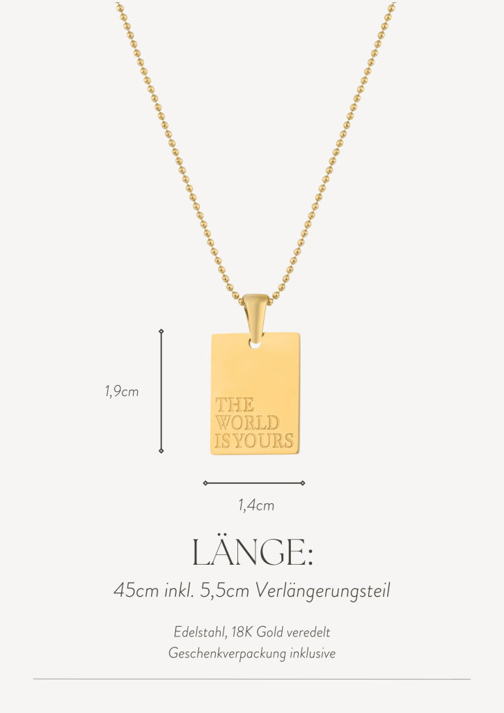 Ein wahrer Blickfang! Ein kunstvoll durchdachtes, auffällig funkelndes Schmuckstück, welches in 14K echtes Gold getaucht wurde und in keiner Schmucksammlung fehlen darf! Die vergoldete Edelstahlkette überzeugt mit dem tollen Kettendesign und edlem handgefertigtem, beschrifteten Anhänger.